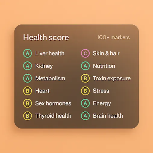 Get a rating for your overall health, and for 15 individual measurements, like Energy, Heart, and Hormones.